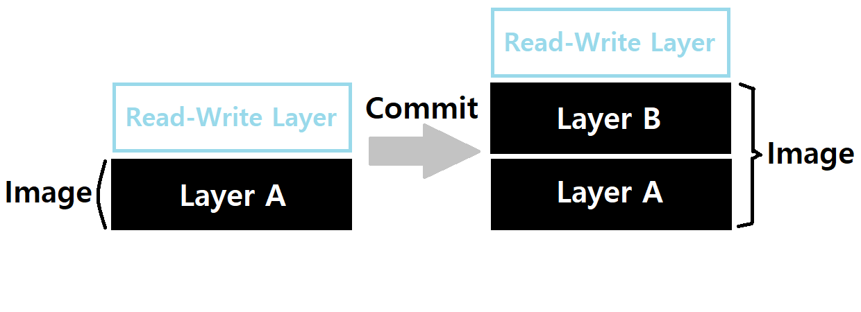 컨테이너는 이미지를 실행한 프로세스이고 실행 후 추가되거나 변하는 값은 컨테이너에 저장이 된다. (read-write)